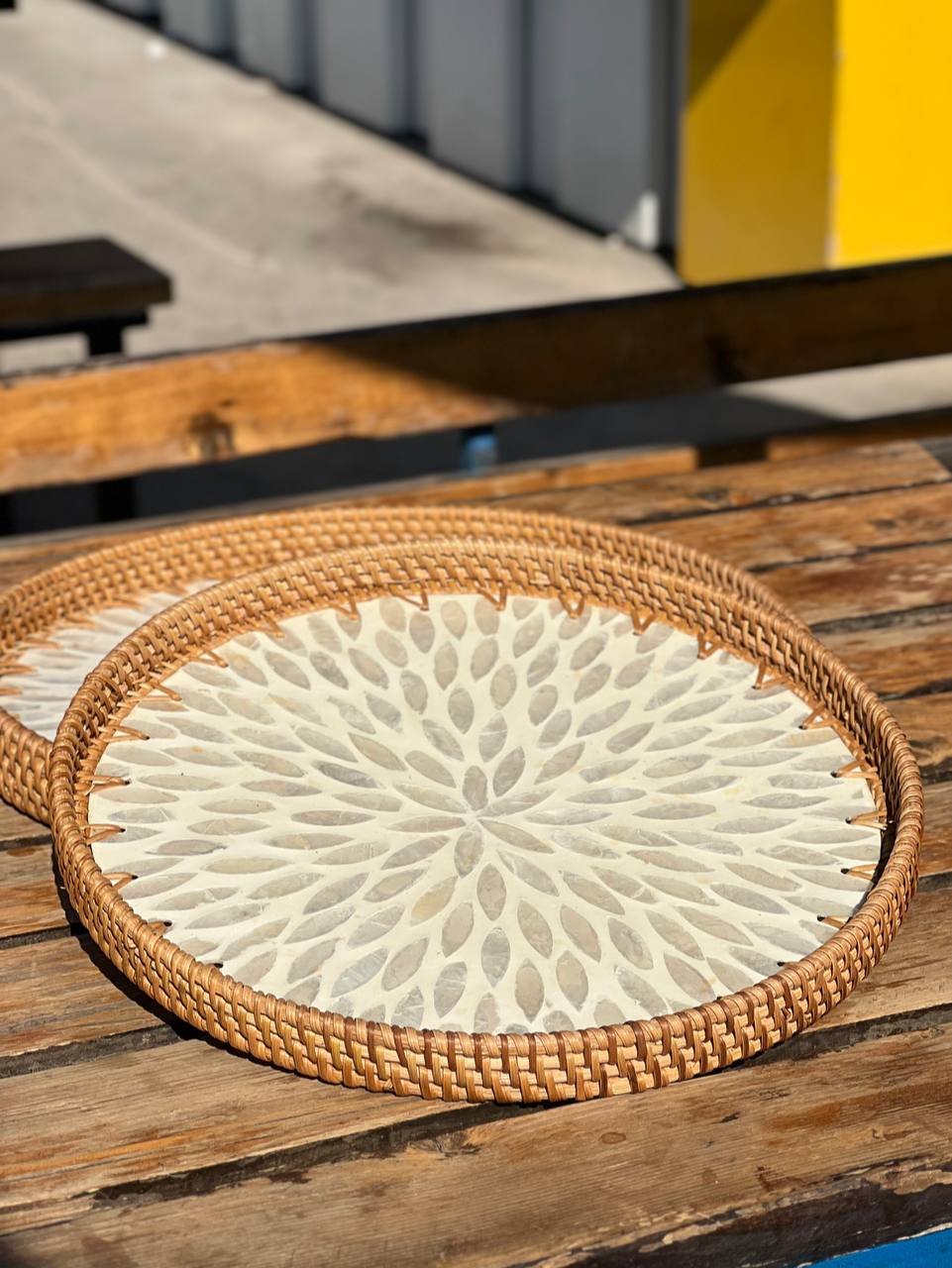 Round Rattan Tray With Mother Of Pearl Inlay