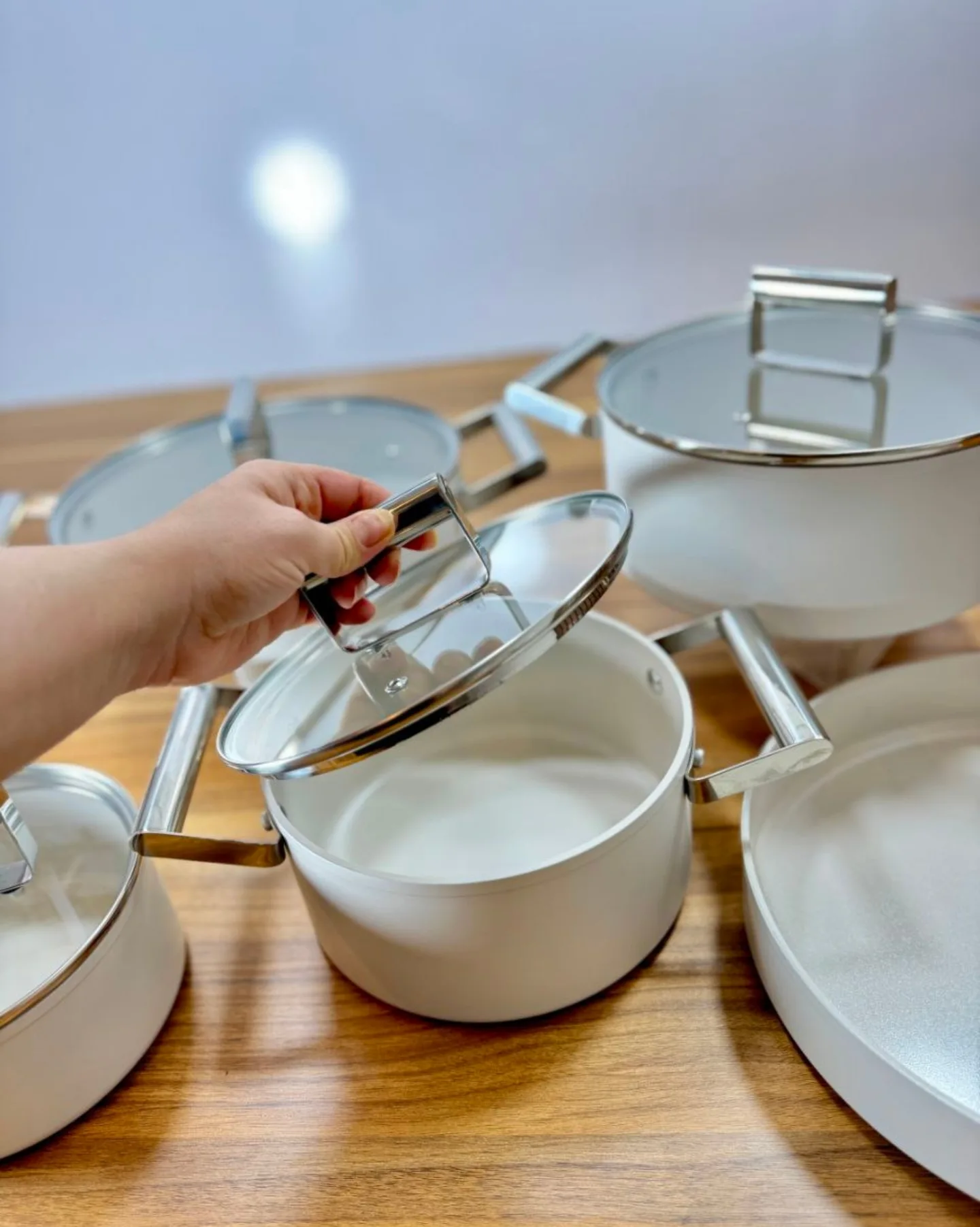 ✔ روکش یا پوشش داخل قابلمه سرامیکیه که صددرصد نسوز و نچسبه و بدون مواد شیمیایی مضر یا اصطلاحن بدون PFAS هستش.
